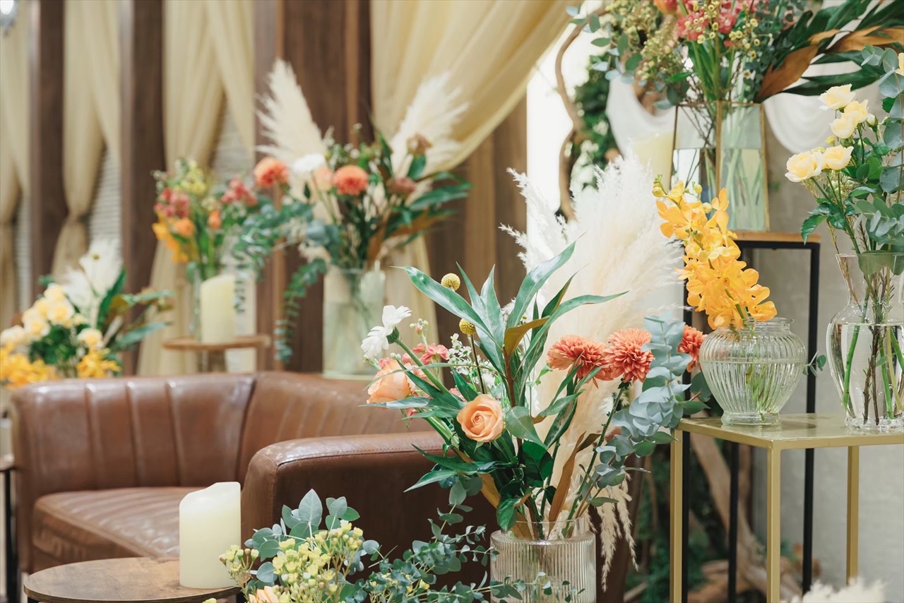 結婚式においても待合室の飾りつけや披露宴会場のテーブルコーディネートなど