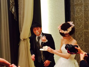 世界のひとつのオリジナルケーキに入刀して頂きました。