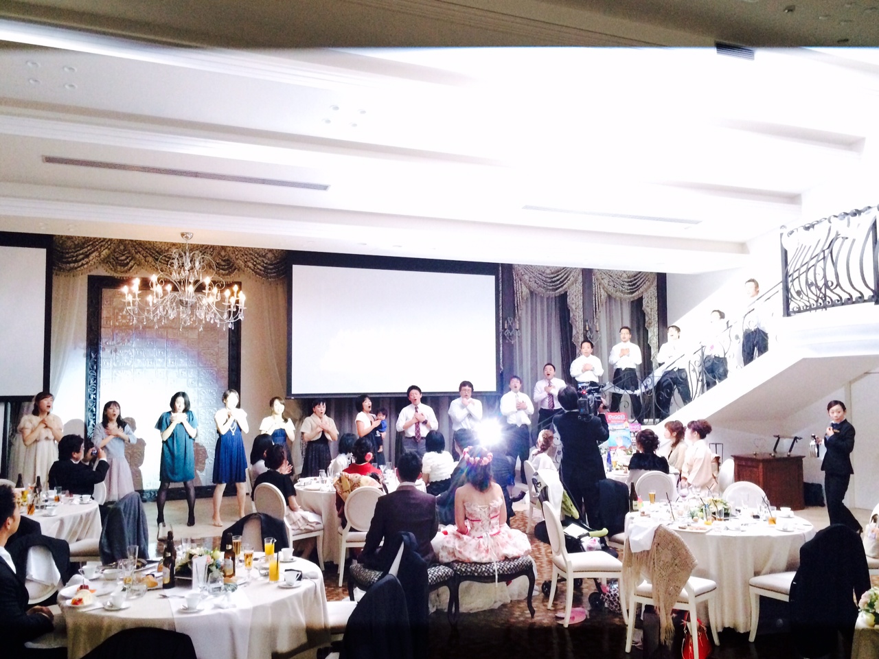 新婦様の職場の皆様からのサプライズの映像も頂き、