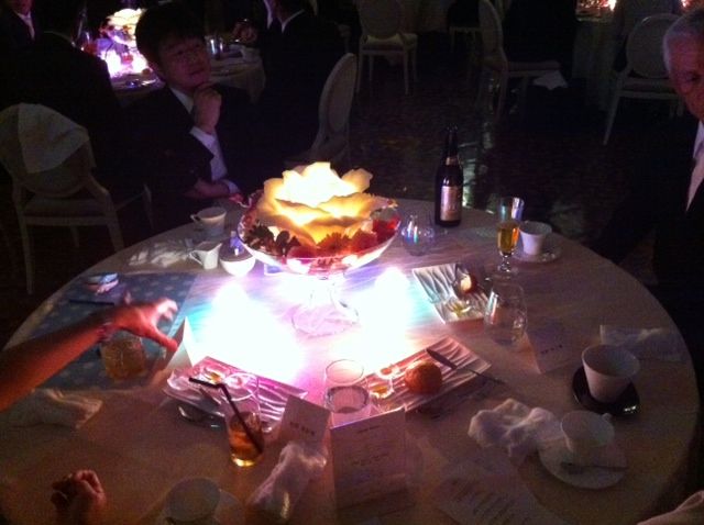 ガーデンにたくさんのフルーツやデザート、また生ハムやチーズも並び