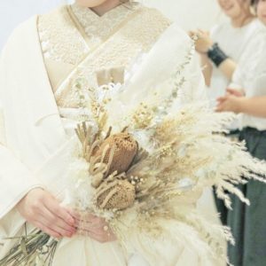 新婦さんが「和ブーケ」をもっていらっしゃって