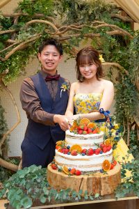 おふたりだけのウエデイングケーキに笑顔で入刀です!