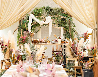 ドレスだけではなく、会場の装飾にもピンクを混ぜて