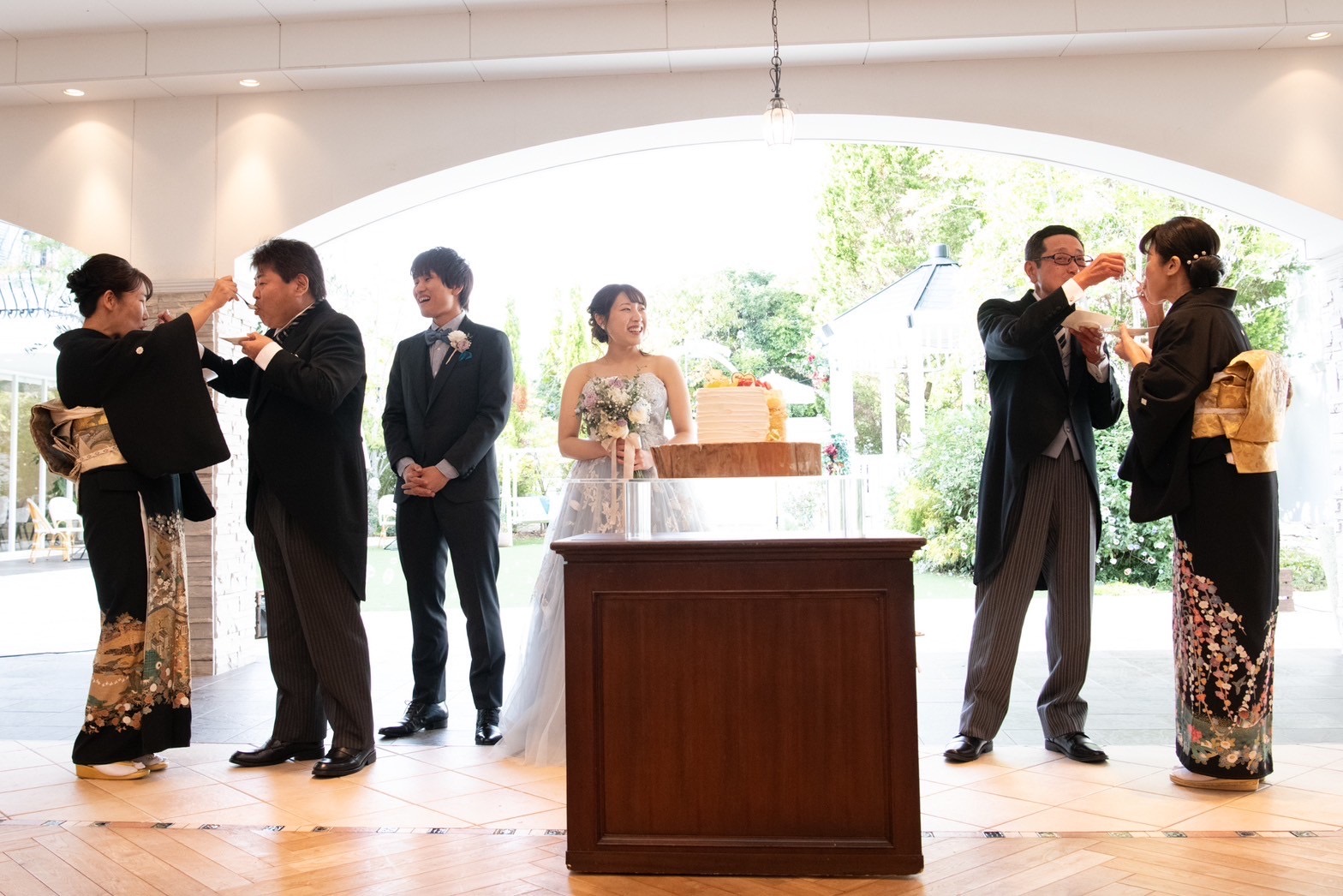 ケーキ入刀をし、ファーストバイトです。