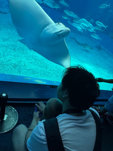 マンタやジンベイザメ、チンアナゴなどそこでしか見られない珍しい生き物たちに釘付けで1歳半ながら大興奮でした