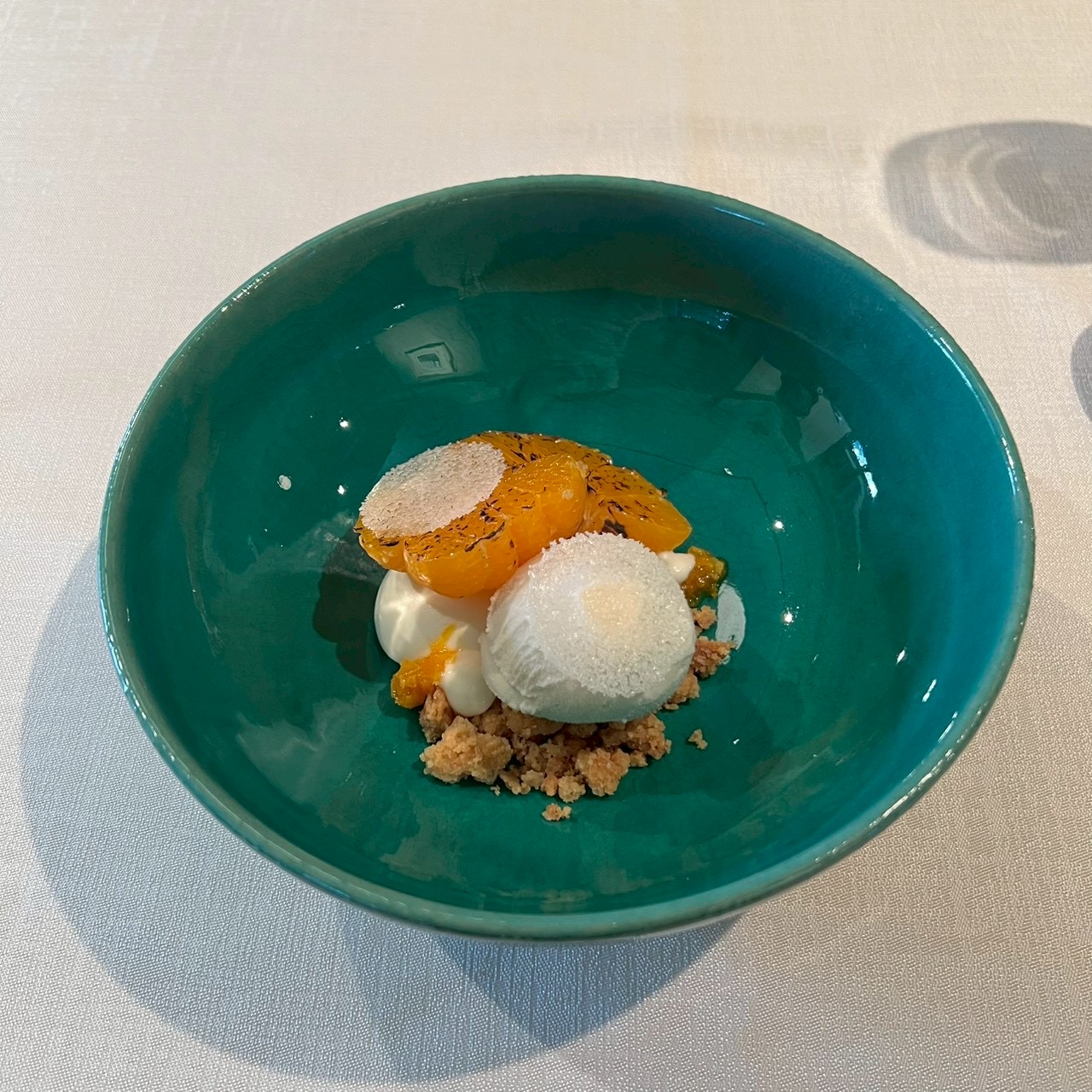 今回いただいたデザートはみかんが炙ってある事で香りと甘味が一層引き立ち、ベルガモットとの香りと相性が良くコース料理を食べた後に爽やかでとても美味しくいただく事ができました!