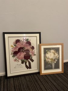 私たちの会場でも提携しているお花屋さんでアフターブーケとして額縁にいれて保存したり・・・