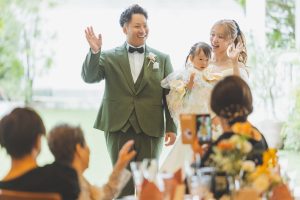 披露宴でははじめにゆうとさん あやのさん みあちゃんと3人でご入場です