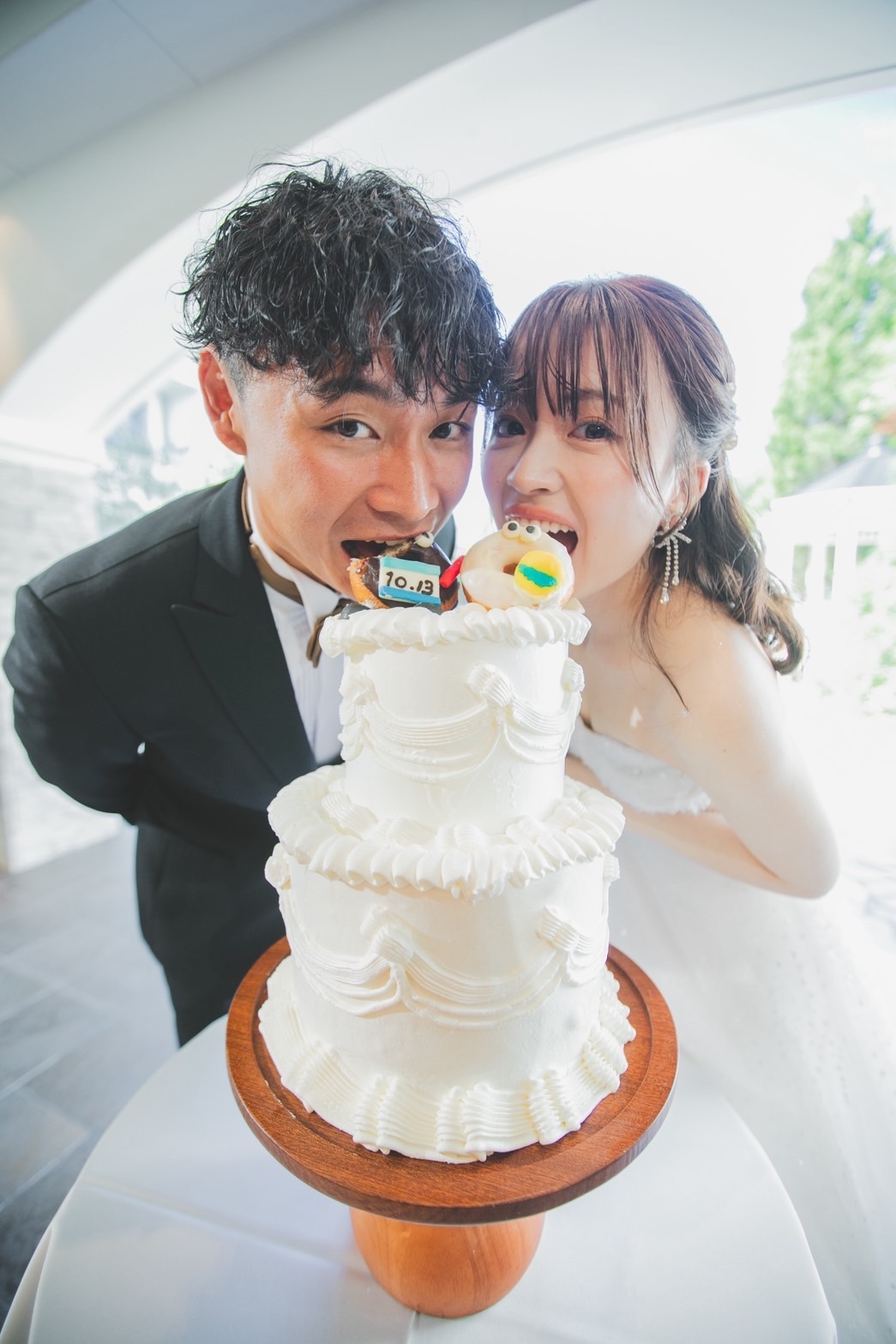 おふたりはそのケーキに入刀をしファーストバイトで食べさせ合いっこをするかと思いきや
