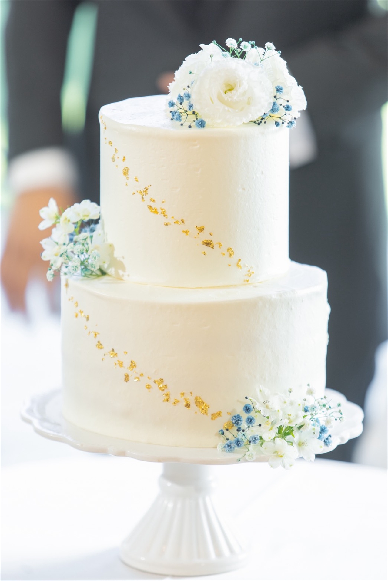 おふたりの好きなブルーで彩られているカスミソウがのった